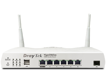 VDSL2 35b Modem Router for SMBsVigor2865 Series is a VDSL2 35b/ADSL2+ Security Firewall router integrating a DSL modem which is compatible with variants of ADSL and VDSL, including profile 35b supervectoring. There is also a Gigabit Ethernet WAN port for broadband connections to share the traffic load or serve as a failover connection. 3G/4G/LTE USB modem can also be attached to the USB ports of the router. The 2865 LTE series includes models with built-in 802.11ac Wave 2 wireless standard and VoIP gateway.